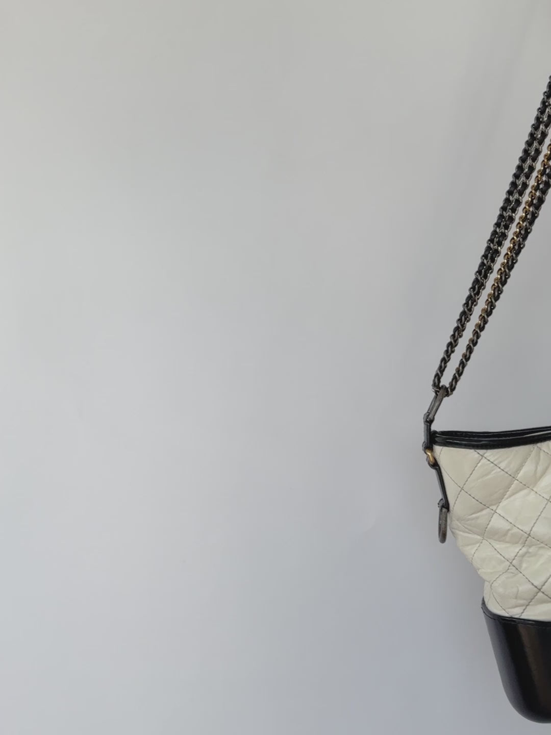 Diese wunderschöne Chanel Tasche aus 2017 / 18 besticht durch ihre besondere Größe, die silberne und goldene Hardware und das schwarze und weiße feine Leder. Die Tasche kommt mit Bag ID und kann Crossbody, in der Hand und über die Schulter getragen werden.